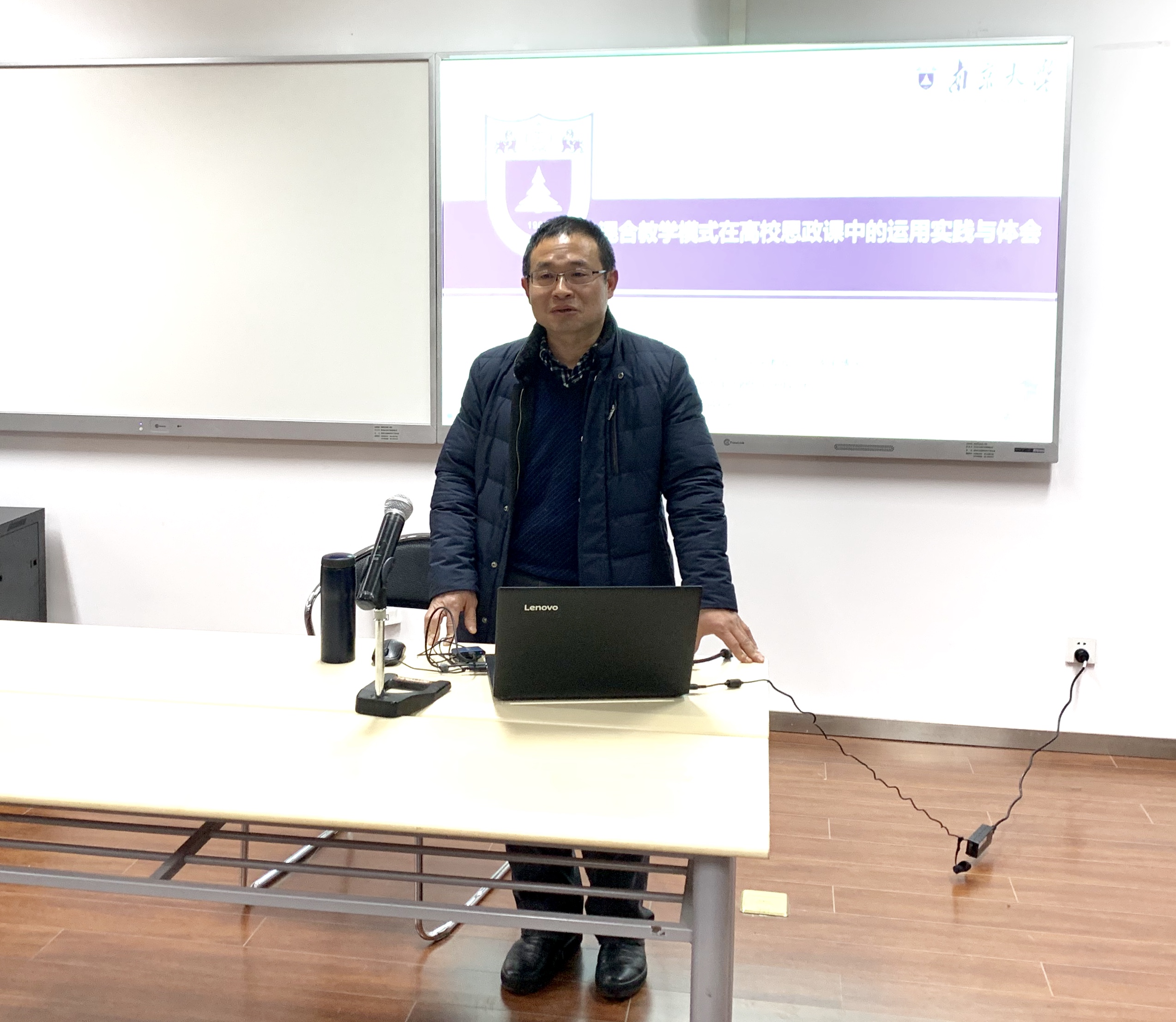 学院教师代表就自己的教学经历详谈相关课程的教学及改革经验。沈伯平教授以“混合教学模式在高校思政课中的运用实践与体会”为主题,展现混合教学模式在《毛泽东思想与中国特色社会主义理论体系概论》课程中的现实运用。王锁明教授以“马克思主义发展思想”为例,结合教学案例,从因材施教、形散而神不散、化抽象为具象、思想教育意义四个方面畅谈教学体会。李喜英教授就《思想道德修养与法律基础》课程的混合式教学分享了自己的教学经验,同时指出,教师队伍建设需要扬长避短,翻转课堂本身的内容以及评分政策有待继续更新与细化,实践教学模式需进一步探索。