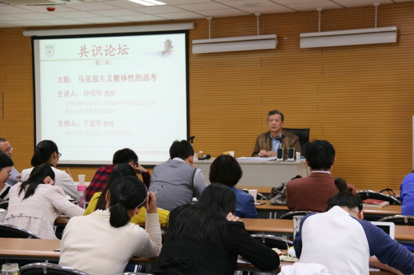 共识论坛第二讲邀请了全国高校马克思主义理论学科研究会副会长、原中山大学教育学院院长钟明华教授作了题为“马克思主义整体性的思考”的讲座。马院全体师生以及部分外院同学出席了这次论坛。