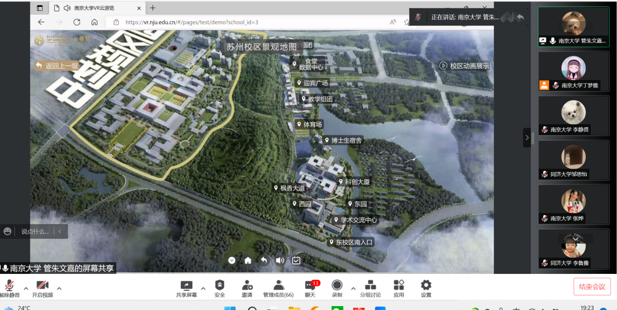 2021级硕士生第一党支部第三党小组的成员,带领两校同学通过VR游览南京大学鼓楼、仙林、浦口、苏州四个校区,在云端共结深厚友谊。通过实景VR,两校同学一同参观南京大学的四个校区,感受南大的百廿辉煌。高梦晗和李静贤同学和大家一起走进具有浓厚历史底蕴的鼓楼校区,回顾百廿载育人精神传承;卢航同学带领大家一同走进现代大气的仙林校区,了解“小蓝鲸”们的学习生活,感受仙林校区的生机与活力;来到龙王山脚下的浦口校区,围绕“南京大学星”,丁梦雅同学的让大家品味到了浦苑情怀;漫步于大气雅致的苏州校区,我们跟随管朱文嘉同学一起感受到了江南韵味与“诚朴雄伟”的充分融合。百廿风雨,十纪辉煌,虽然受限于疫情,我们不能相聚线下校园,但是依然可以通过“VR游览”云端同游将南大的校园风光尽收眼底。