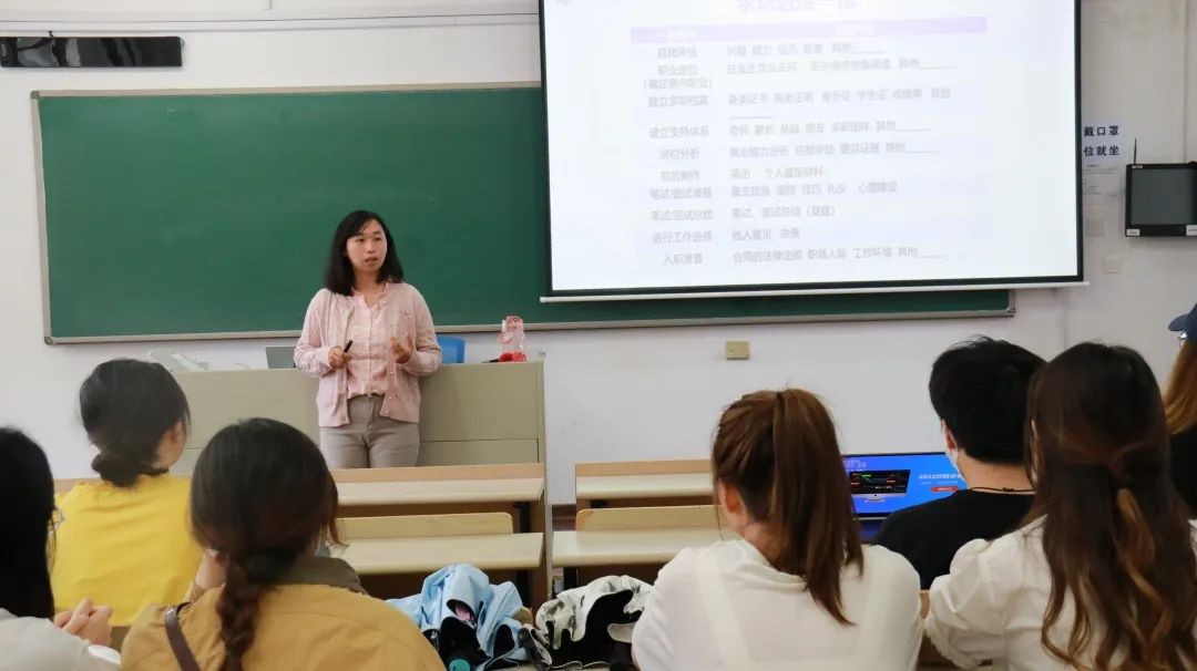 时老师则结合当前就业大环境与专业学科的就业实况,提醒同学们尽早做好个人生涯规划,主动落实求职准备。时老师指出随着马克思主义学科迅速发展,学科人才储备体量激增,势必对专业毕业生有着更高的从业要求,加之疫情等不确定因素会对同学们的求职进度产生一定影响,所以我院学子有必要尽早做好未雨绸缪的生涯准备工作。